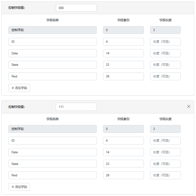 - 控制字段长度 (可选)如果多行模式启用,这个值定义了从起始索引开始读取控制字段的长度。