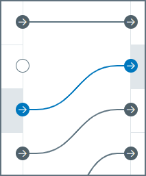 要定义映射,请点击左侧窗格中的节点并将其拖动到右侧窗格中其对应的对象上。选中某个节点后,其连接线为蓝色,其他所有线均为黑色。