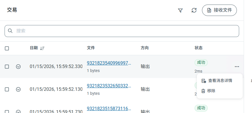 - Received:端口接收的消息日志;每条消息都有自己的文件夹,与 MessageId 匹配