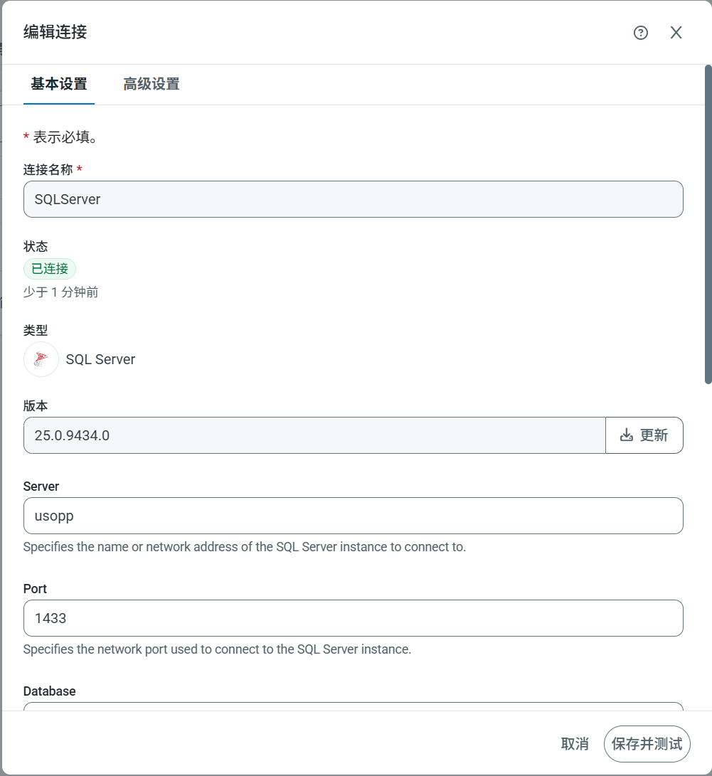 安装完成后,或者如果无需下载安装驱动程序,仍需提供具体的连接参数。这些参数因目标而异,并且可能需要 OAuth 重定向。点击添加并测试以保存连接。如果测试失败,连接仍会保存,但可以继续对其进行编辑以解决任何错误。