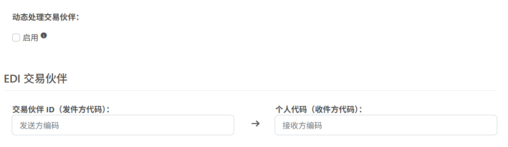 - 动态处理交易伙伴:启用后,端口会自动从 EDI 事务中识别并跟踪交易伙伴关系。禁用后,必须手动定义交易伙伴关系。有关更多信息,请参阅 定义交易伙伴关系。