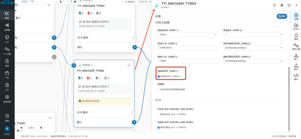 正确配置交换头、测试指示符和ACK机制是EDIFACT通信的基石。通过知行之桥EDI系统的可视化界面,企业可快速完成端口设置,同时通过严格的测试验证(如使用测试指示符隔离环境),保障生产环境的稳定运行。后续实施中,建议结合完整的端到端测试案例(包括ACK反馈场景),确保EDI流程的鲁棒性。