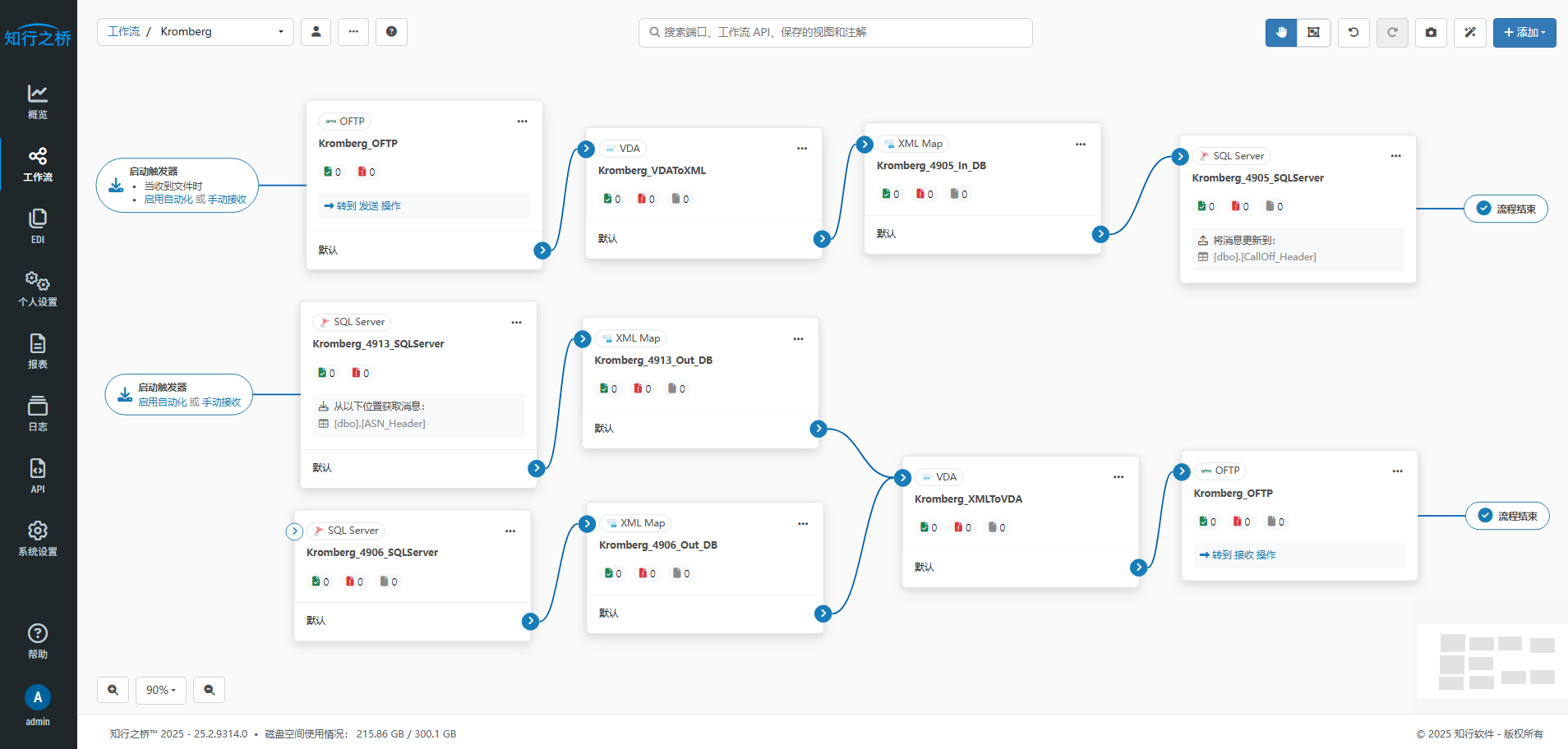 该工作流清晰展示了知行之桥如何一站式解决 K&S EDI 对接的核心环节:安全传输 (OFTP2)、标准报文处理 (VDA)、格式转换映射、与内部系统集成。可视化配置让搭建、测试、维护都变得异常简单。