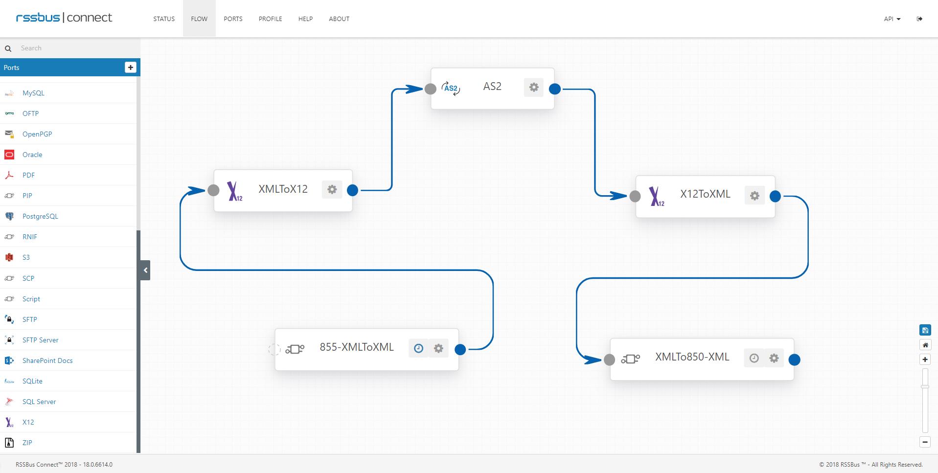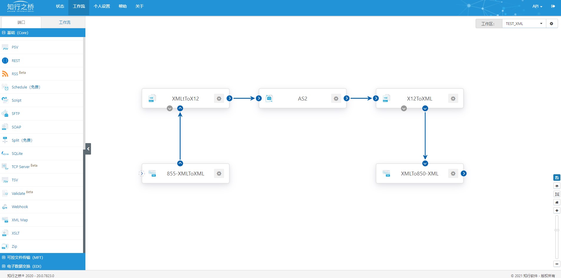 知行之桥®通过AS2/OFTP/SFTP/FTP Port实现数据传输,借助于Excel/EDIFACT/X12 Port实现报文格式转换,系统只需简单配置,即可实现安全可靠的自动化文件传输。